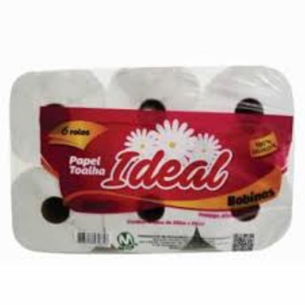 Papel Toalha Bobina Ideal 6x200 100% Celulose